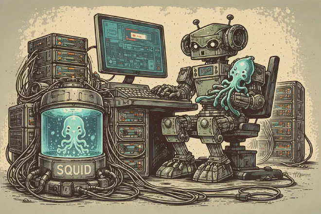 Squid-proxy - это популярный, высокопроизводительный и бесплатный прокси-сервер с открытым исходным кодом, предназначенный для кэширования и фильтрации трафика. Он работает как посредник между пользователями и интернетом, поддерживая HTTP, HTTPS и FTP, что ускоряет загрузку сайтов, оптимизирует пропускную способность сети и повышает безопасность корпоративных сетей.